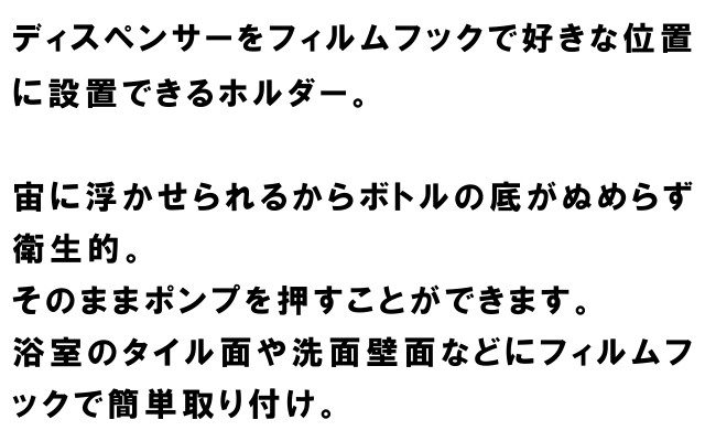 ディスペンサーをフィルムフックで好きな位置に設置できるホルダー。 |
