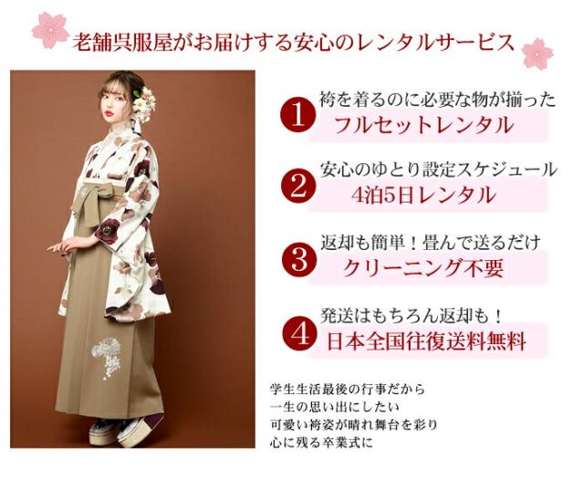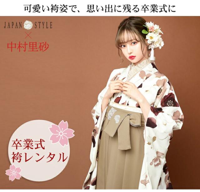 【レンタル】 卒業式 袴 レンタル 女 袴セット 女性 卒業式袴セット 2尺袖着物&袴 フルセットレンタル 大学生 モダン 「生成り地にワインレッドの花柄」JAPAN STYLE×中村里砂 二尺袖 上品 大人