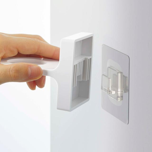 ディスペンサーをフィルムフックで好きな位置に設置できるホルダー。 |