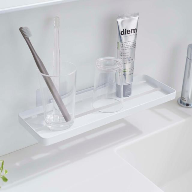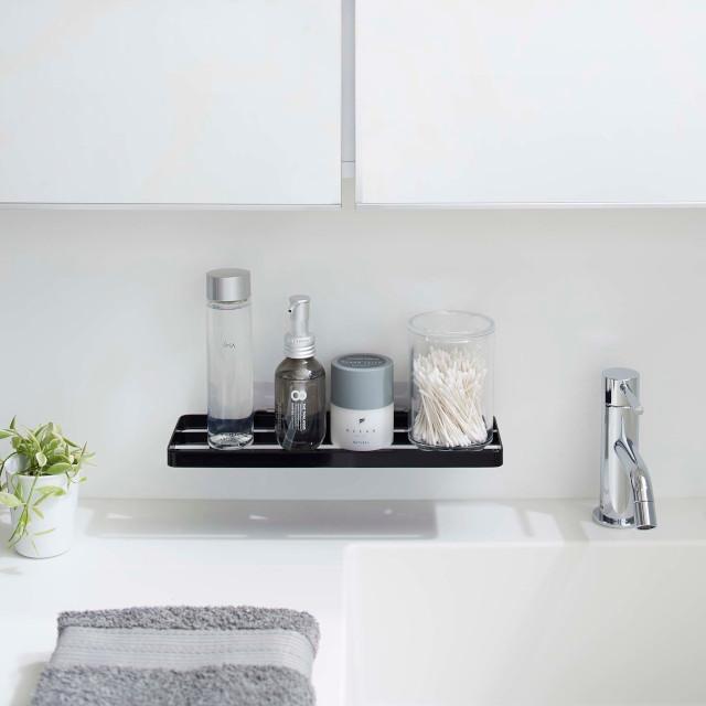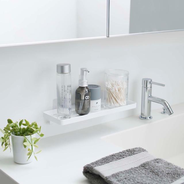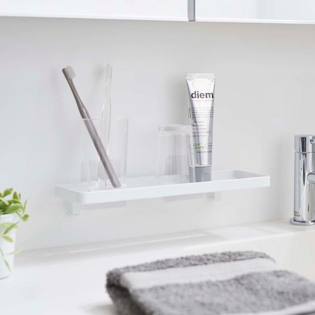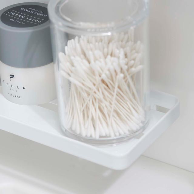 トレーの幅が大きいのでメガネやヘアゴム、ヘアピンなどの一時置きにも使えます。 貼って剥がせるフィルムフックでしっかり固定できるから安心。