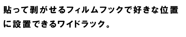 貼って剥がせるフィルムフックで好きな位置に設置できるワイドなサニタリーラック。 |