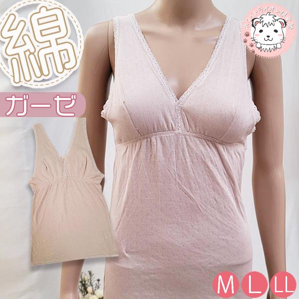 カップ付 タンクトップ レディース プレミアムガーゼ 綿仕立て ガーゼインナー カップ付ラン型インナー ブラトップ M/L/LL