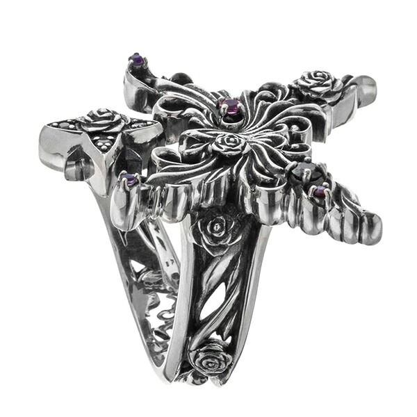 唐草と薔薇を使った繊細な彫り込みデザイン。