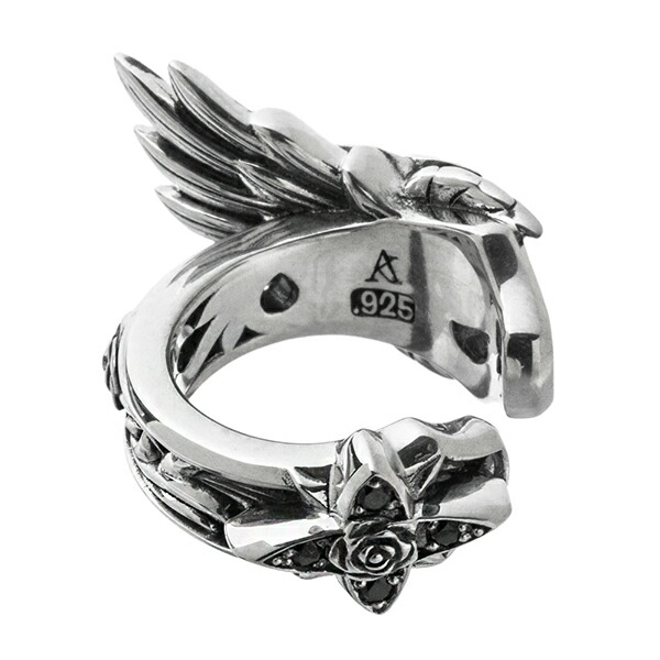 唐草と薔薇、羽を使った繊細な彫り込みデザイン。