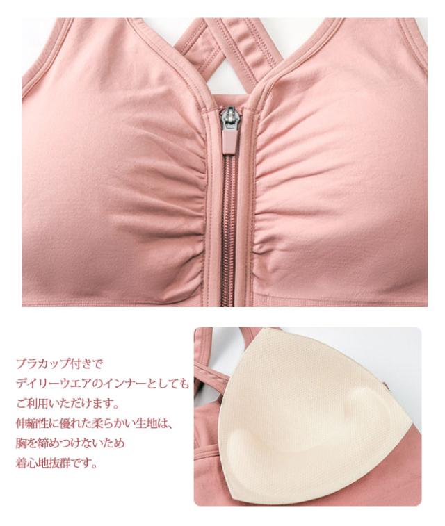 柔らかくて伸縮性のある素材で着心地抜群のブラトップ。 柔らかな素材なのにサポート感がありつけ心地もよく運動しやすかったです。伸縮性が高くぴったりとフィット。ランニングの時も揺れを防いで、しっかりサポート肌に優しいノンワイヤーブラです。伸縮性に優れた柔らかい生地は、胸を締めつけないため着心地抜群です。運動時にバストが揺れない!蒸れない!動かない!から快適なスポーツライフを。さらりとした質感の気持ちいい着心地! 汗によるベタつきを軽減します。機能性・伸縮性・吸水性も抜群で、ヨガだけに限らずランやフィットネスにもおすすめの優秀アイテムです。ブラカップ付きでデイリーウエアのインナーとしてもご利用いただけます。