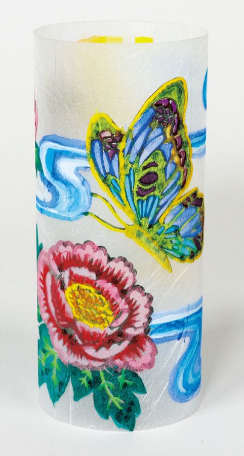 商品説明:和紙の風合いを活かした美しいランプシェード■黒ラシャ紙で制作した切り絵や落ち葉などを、雲龍紙貼りPETシートにのり付けして円筒にしてランプをセットすると、美しい和紙のランプシェードができあがります。 ■雲龍紙貼りPETシートに絵具で着色することもできます。■ランプは全て電池付