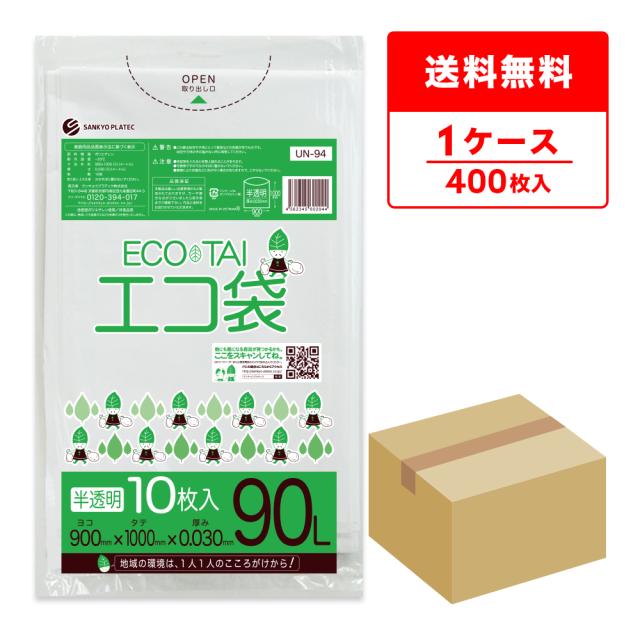 UN-94 ポリ袋 90リットル 0.030mm厚 半透明 10枚x40冊 / ゴミ袋 ごみ袋 送料無料
