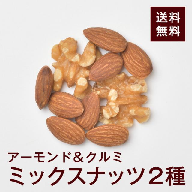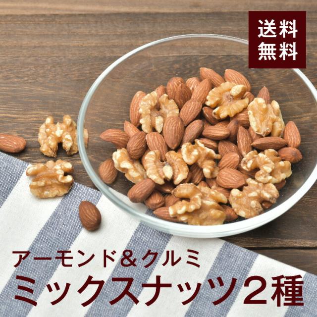 2種ミックスナッツ【添加物不使用・食塩不使用】800g(アーモンド&クルミ)【送料無料】アーモンド クルミ 湿気対策◎ おつまみやおやつに最適♪ チャック付き