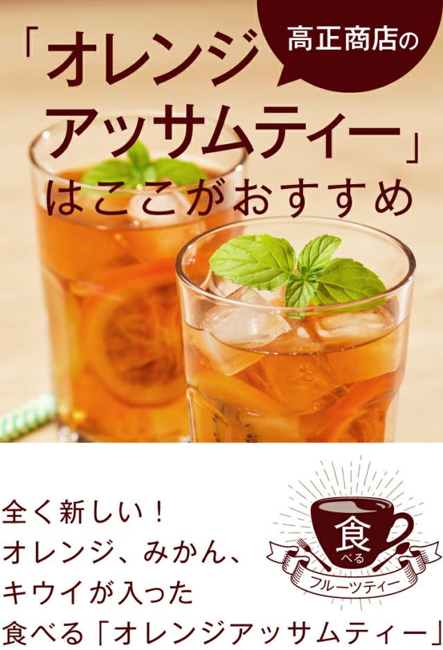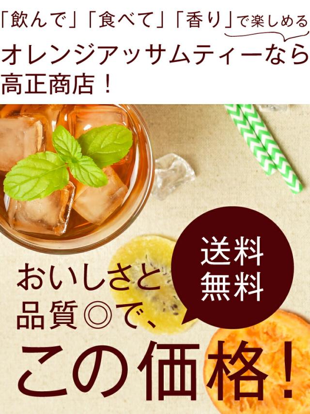 高正商店は、紅茶の本場インド産のアッサムティーを使用しています!他の紅茶に比べてクセが少なく、上品な甘さもあるため、オレンジなどの柑橘系ドライフルーツとの相性もとても良いです◎また、アッサムティーにはほかの紅茶よりタンニンが1.5倍含まれているので、美肌効果やデトックス効果があるとも言われています!