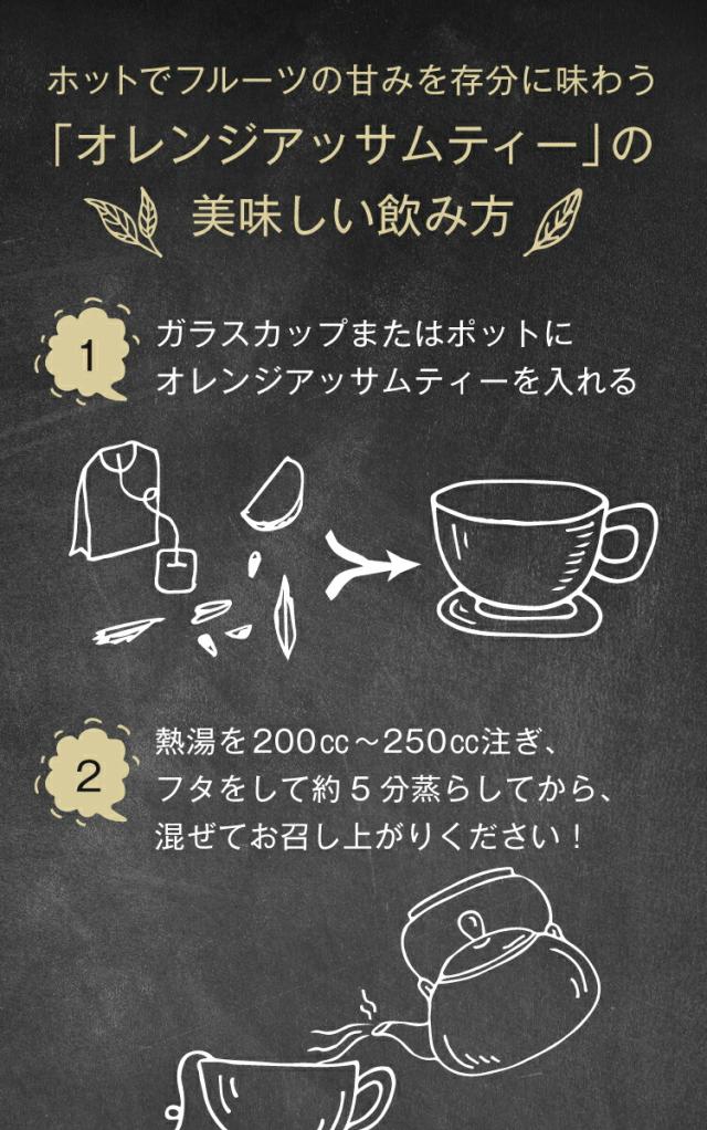 あっさりとした甘みと酸味が少しあって◎オレンジアッサムティーの美味しさをこっそり支えています!