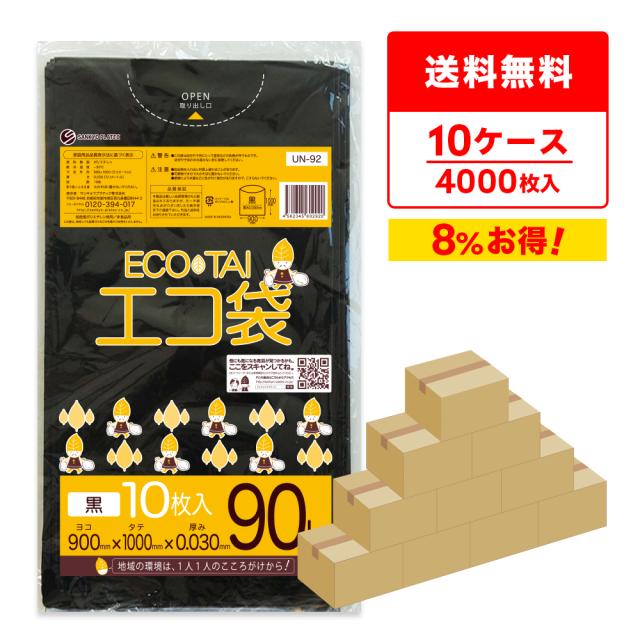 【まとめて10ケース】UN-92-10 ポリ袋 90リットル 0.030mm厚 黒 10枚x40冊x10箱 / ゴミ袋 ごみ袋 送料無料