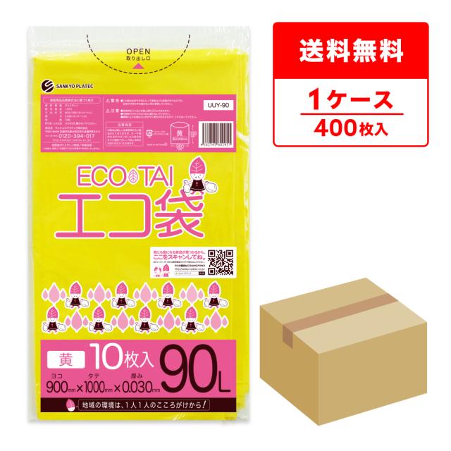 UUY-90 ポリ袋 90リットル 0.030mm厚 黄色 10枚x40冊 / ゴミ袋 ごみ袋 送料無料