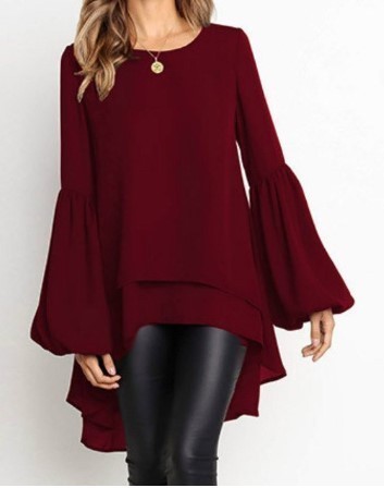 ファッション フリル 秋 シャツ 女性 ブラウス カジュアル ロング パフ スリーブ