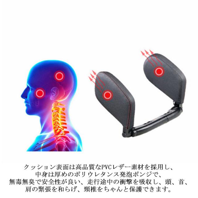 車用首枕 ヘッドレスト カーシート枕 ネックパッド ネッククッション ネックピロー 首サポート 低反発 快適 便利 PVCレザー ドライブ 旅行 運転 パッド回転可能 取付簡単 車中泊用グッズ 子供/大人/高齢者 汎用