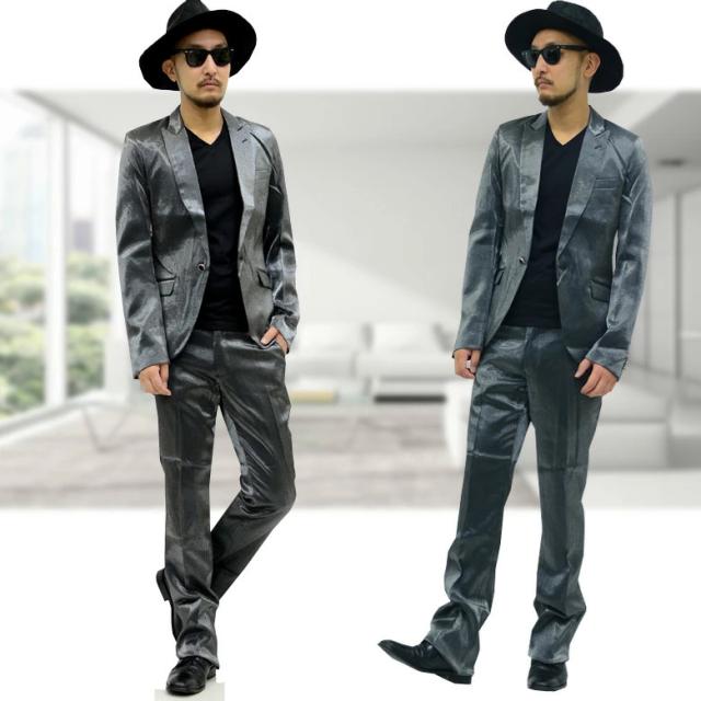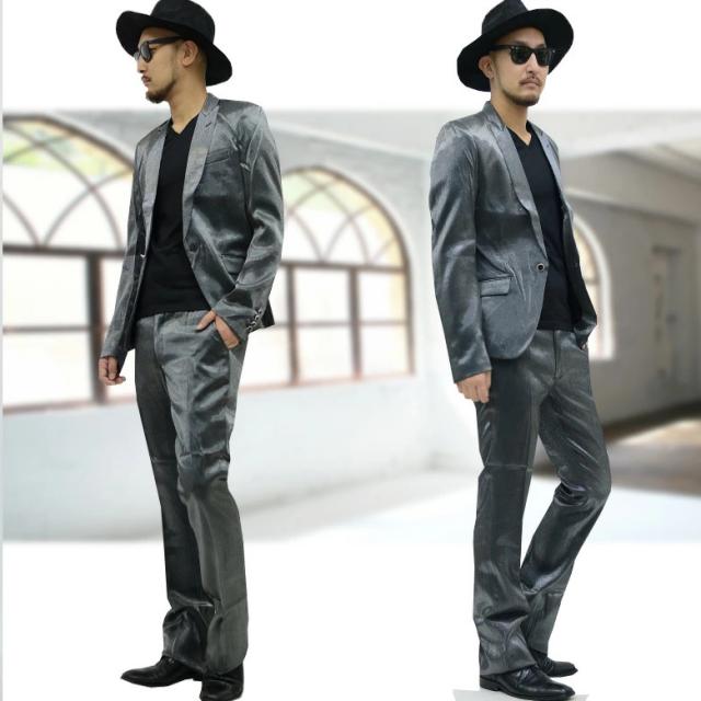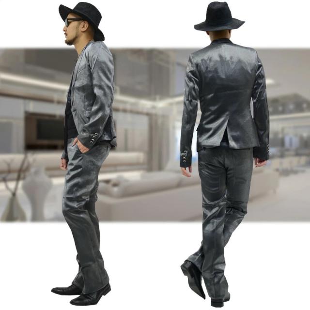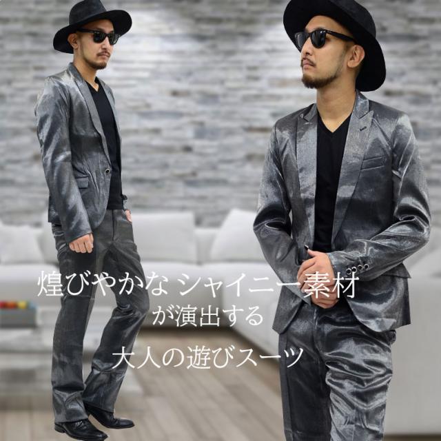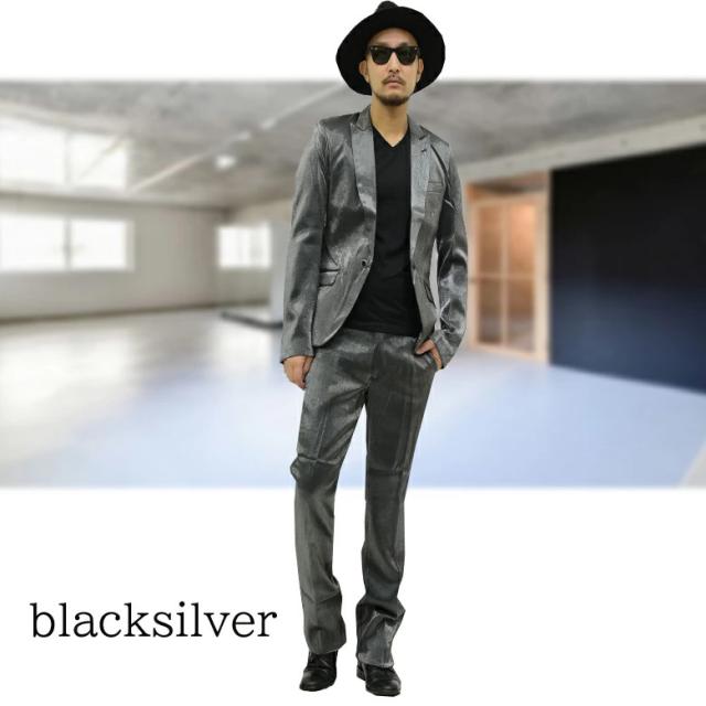 【閉店セール】ピークドラベルシャンブレースーツ ブラックシルバー 013s6392-17 メンズ カジュアル ビター BITTER お兄 ゴージャス メンズファッションメンズカジュアル フォーマル 冠婚葬祭 ホスト 卒業式 二次会 スーツ グレーブラック M L スーツ