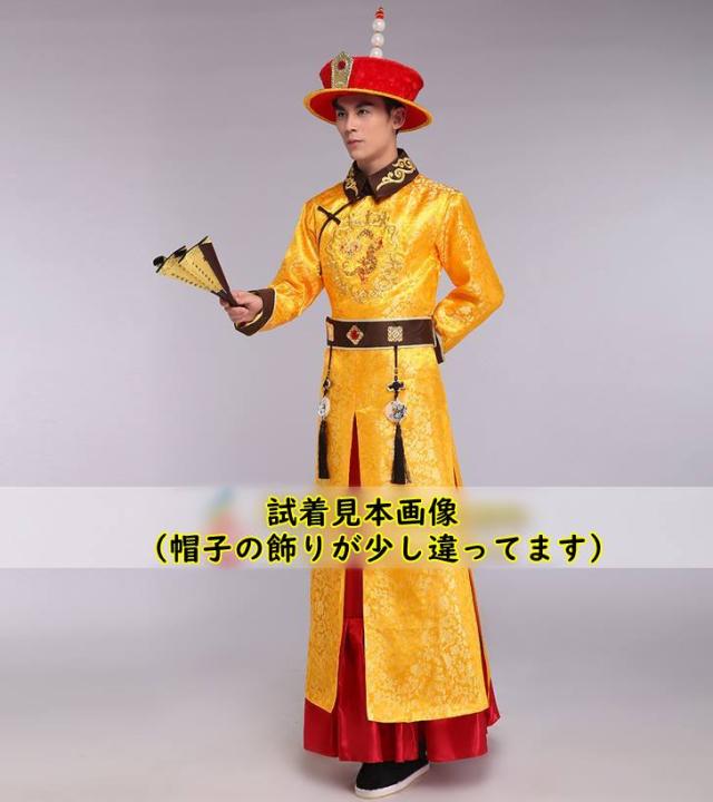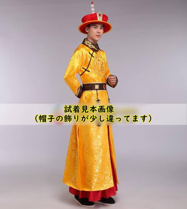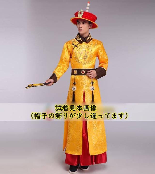 2021年作 清朝皇帝服 古装服 龍刺繍 黄金色 皇帝帽子A 付属