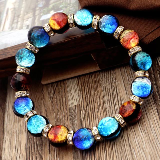 光る ホタルガラス ブレスレット トロピカル 夏 南国 キラキラ メンズ レディース 沖縄 人気 お土産 パワーストーン 送料無料