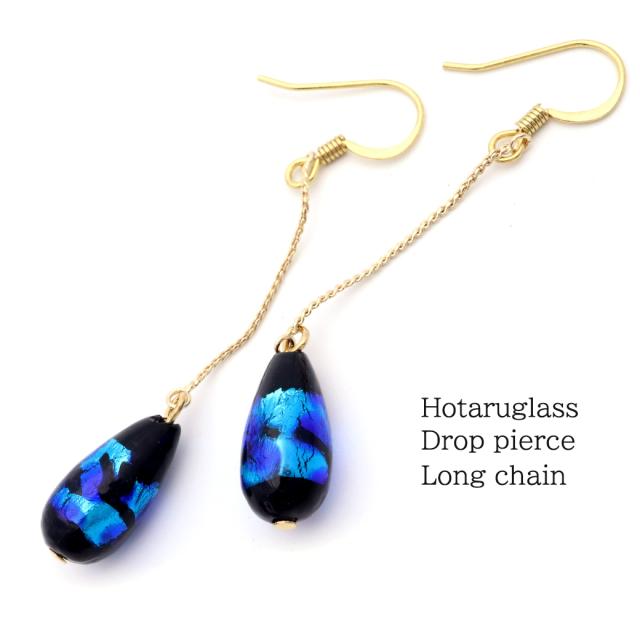 ホタルガラス ピアス レディース しずく 雫 ドロップ 揺れる とんぼ玉 フックピアス 沖縄 お土産 琉球