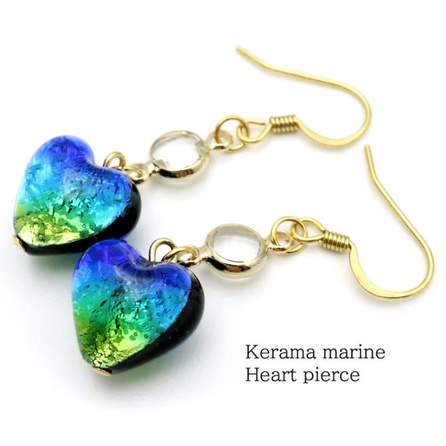 ホタルガラス ピアス レディース 光る ケラママリン ハート フックピアス おしゃれ 綺麗 可愛い