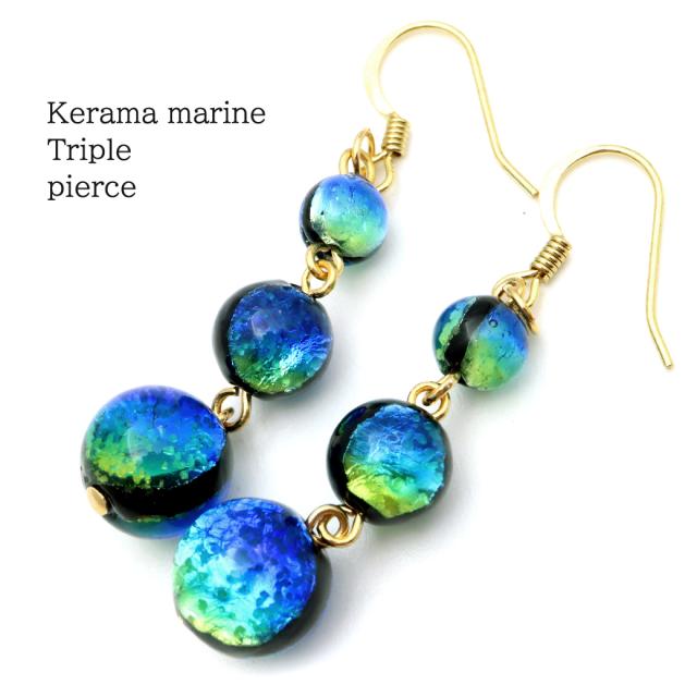 ホタルガラス ピアス レディース 光る ケラママリン フックピアス 3連 おしゃれ 綺麗 可愛い