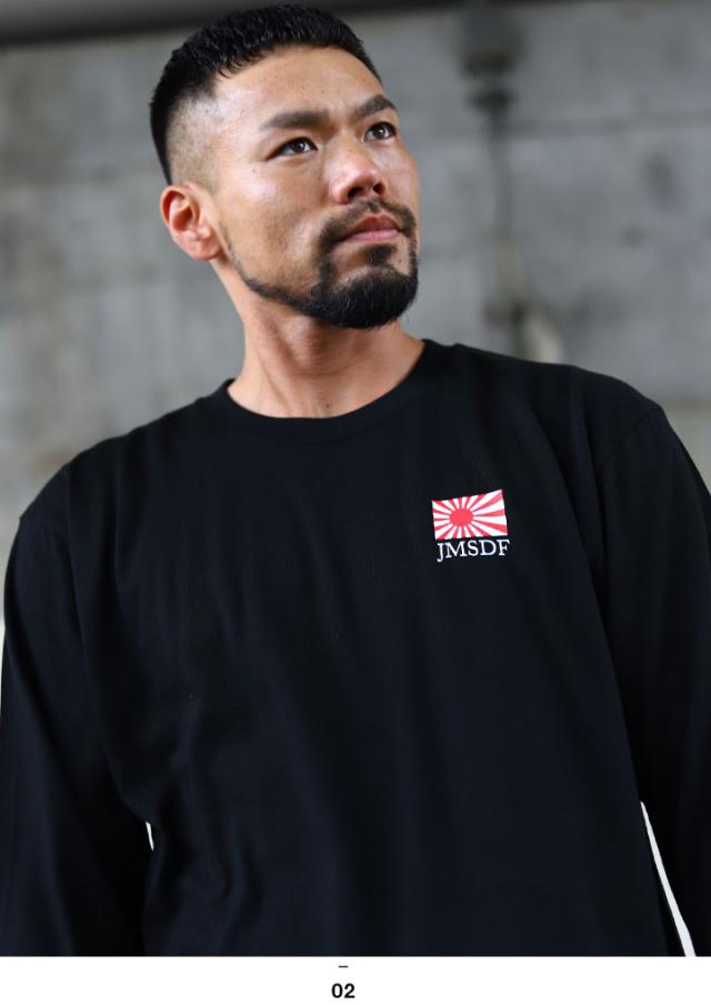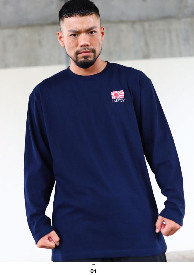 ロンT 旭日旗JMSDF 綿 自衛隊 グッズ 海自 海上自衛隊 ストリート メンズ レディース 紺/黒 大きいサイズ Tシャツ 長袖 おしゃれ かっこいい ワンポイント 日本国旗 ロゴ ミニロゴ 防衛省 航空 ミリタリー 服 零 ZERO 2021秋冬 新作 JT-TL-LT-004