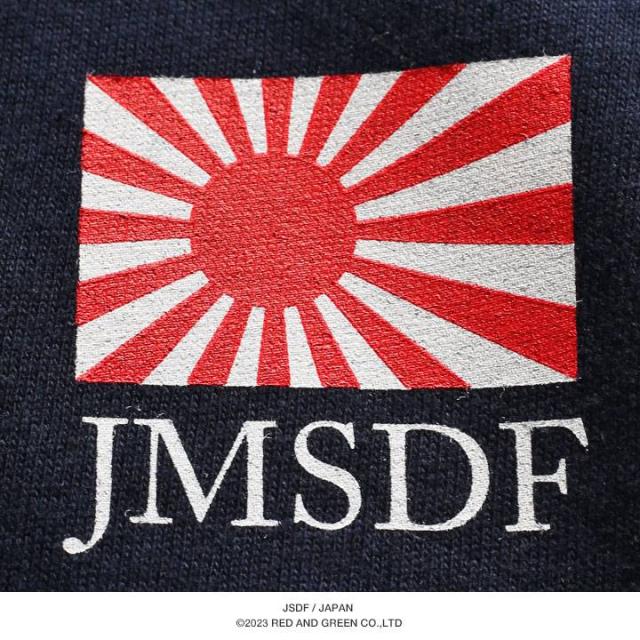 艦艇が掲げる自衛艦旗の「旭日旗/きょくじつき」と英字略称の「JMSDF」ロゴを、左胸にワンポイントで忠実に再現。