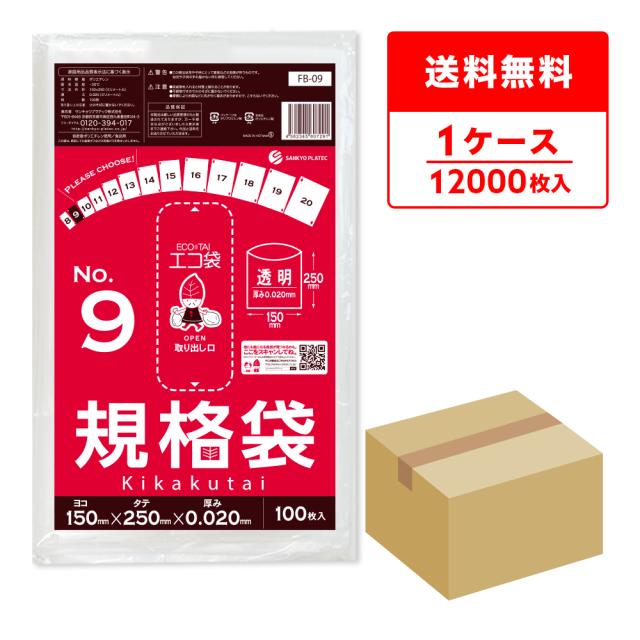 FB-09 規格袋 9号 0.020mm厚 透明 100枚x120冊 食品検査適合 RoHS指定 送料無料