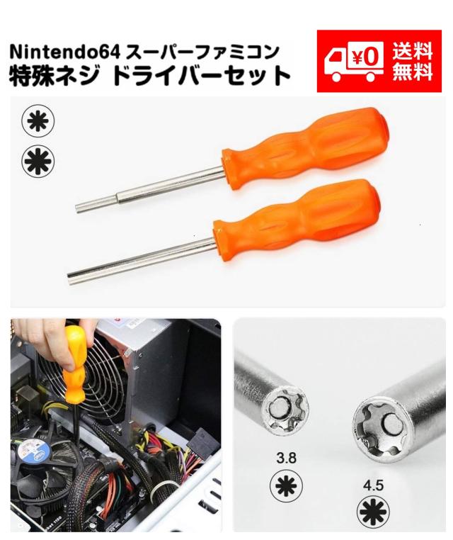 ?星形3.8mmと4.5mmドライバーはニンテンドースーパーファミコン・nintendo64・ゲームボーイのカセット、ゲーム機本体に使われている特殊ネジをはずす為の星型ドライバーです。数種類のゲーム機に使用可能な汎用タイプの特殊ドライバーです。ゲームの分解、電池交換や開口部と内部の洗浄などに役に立ちます。