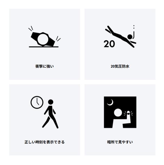 また姿勢が安定しない環境を想定し、上下左右からの衝撃に耐えられる樹脂のガード構造を用い、6時位置のボタンガードと共にG-SHOCKならではの耐衝撃性能を備えました。