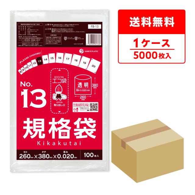 FB-13 規格袋 13号 0.020mm厚 透明 100枚x50冊 食品検査適合 RoHS指定 送料無料