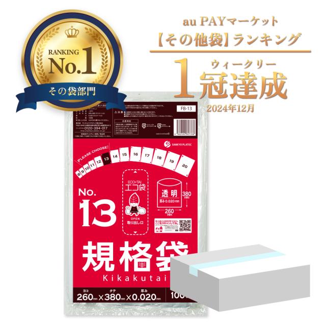 【小箱販売】FB-13kobako 規格袋 13号 0.020mm厚 透明 100枚x10冊 食品検査適合 RoHS指定 送料無料