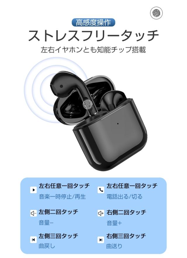 ワイヤレスイヤホン Bluetooth 5.3 ブルートゥース タッチ式 左右分離型 両耳 防水 技適認証済 Siri対応 iPhone ipad Android ランニング 【PL保険加入済み製品・安心】