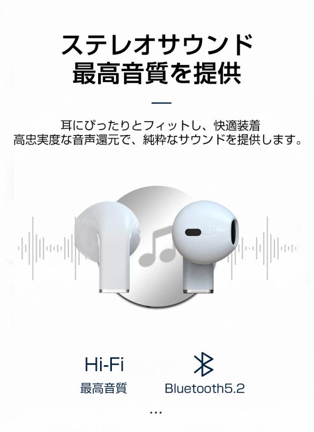 ワイヤレスイヤホン Bluetooth5.2 ワイヤレスヘッドセット ブルートゥースイヤホン 自動ペアリング 瞬間接続 高音質 ステレオサウンド 【PL保険加入済み製品・安心】