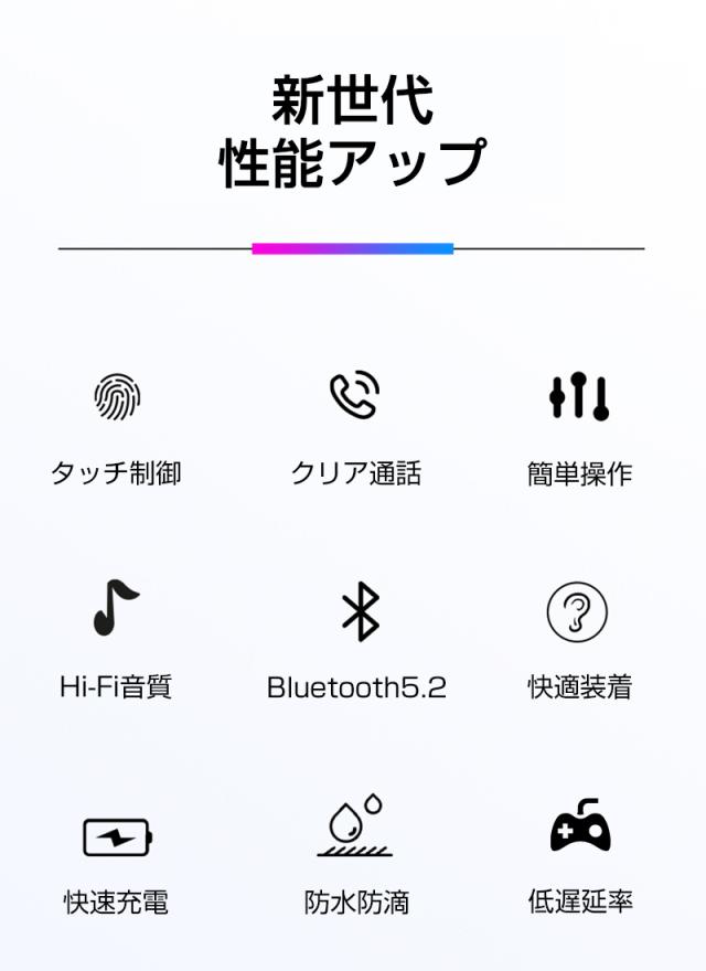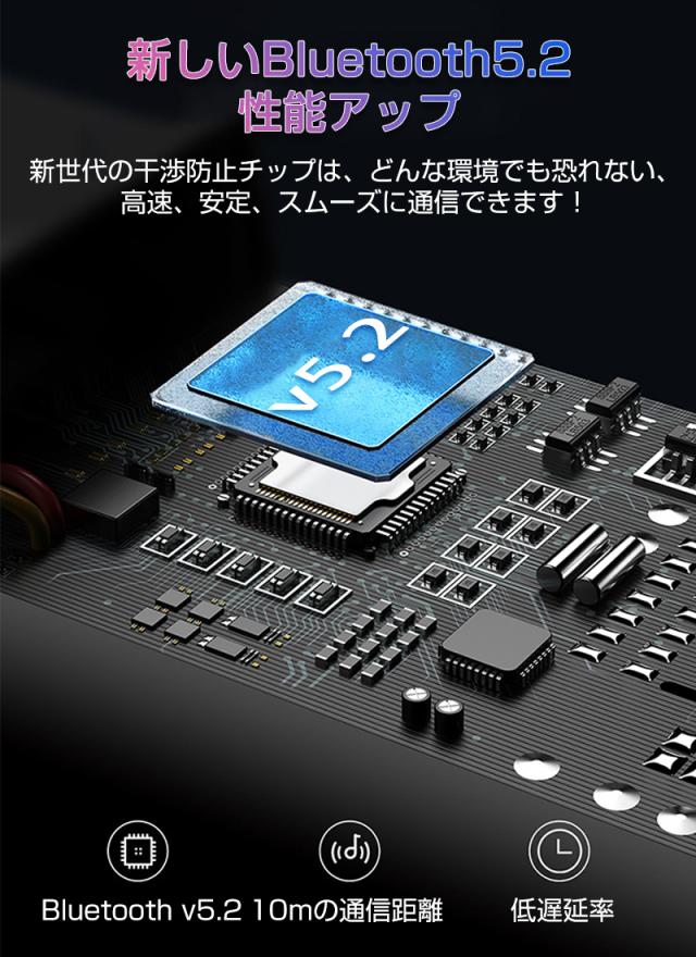 【Bluetooth5.2】最先端なBluetooth5.2通信技術はBluetooth5.0と比べて、より高い伝送速度と安定した性能を提供します。ワイヤレス通信にはよくある途切れや遅延問題も改善され、どんな環境でも恐れない、高速、安定、スムーズに通信できます!