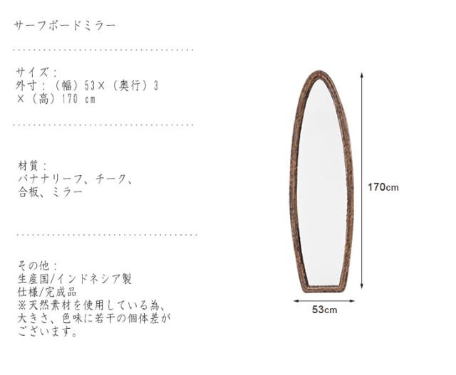 Ohana シリーズ サーフボードミラー (ミラー 全身鏡 姿見 サーフボード ビーチ 海沿い チーク バナナリーフ リラックス 西海岸風 アジアンリゾート 開放感 おすすめ おしゃれ)