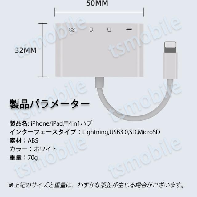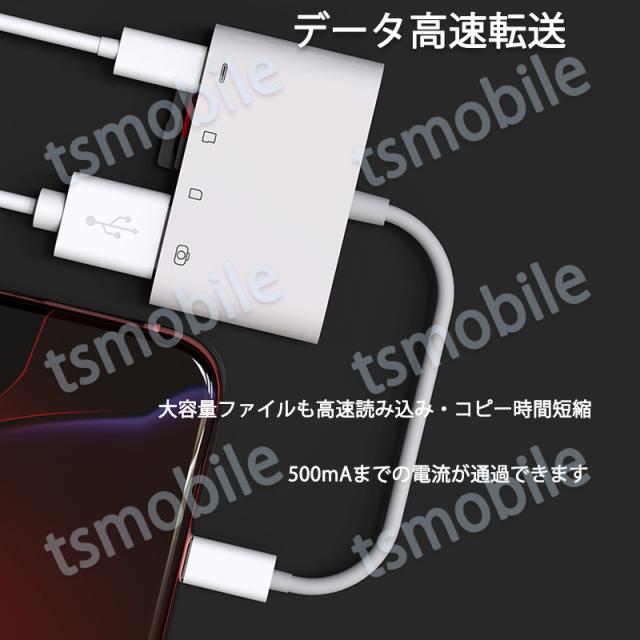 iPhone 4in1変換アダプタ Lightning充電ジャック USB3.0ポート SD/TFカードリーダー iPadライトニング データ転送 バックアップ PDFファイル 保存移動