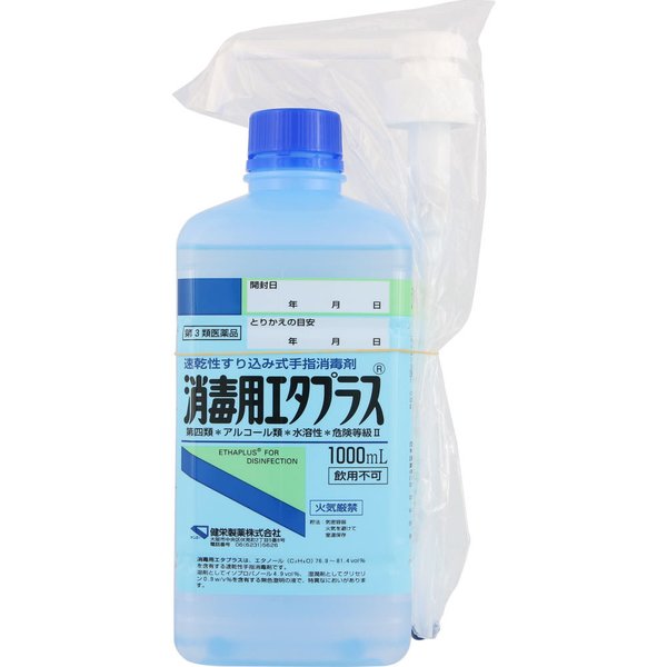 【送料込み】 消毒用エタプラス 1000ml (ポンプ付き) 【健栄製薬】【ケンエー】【第3類医薬品】