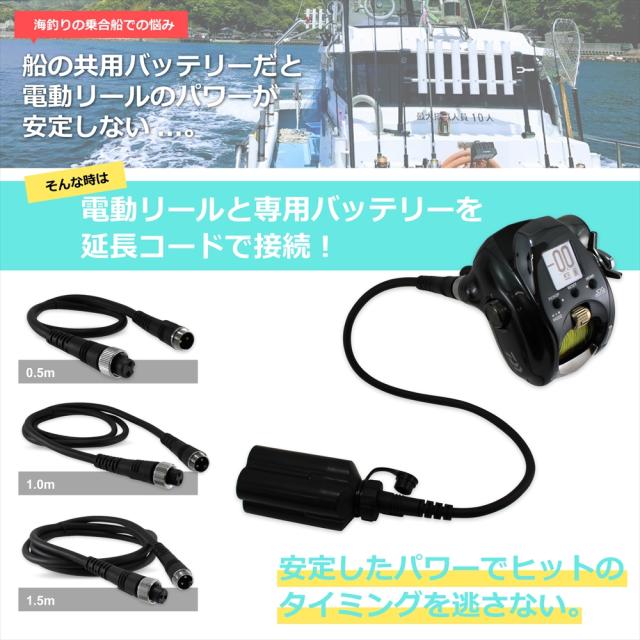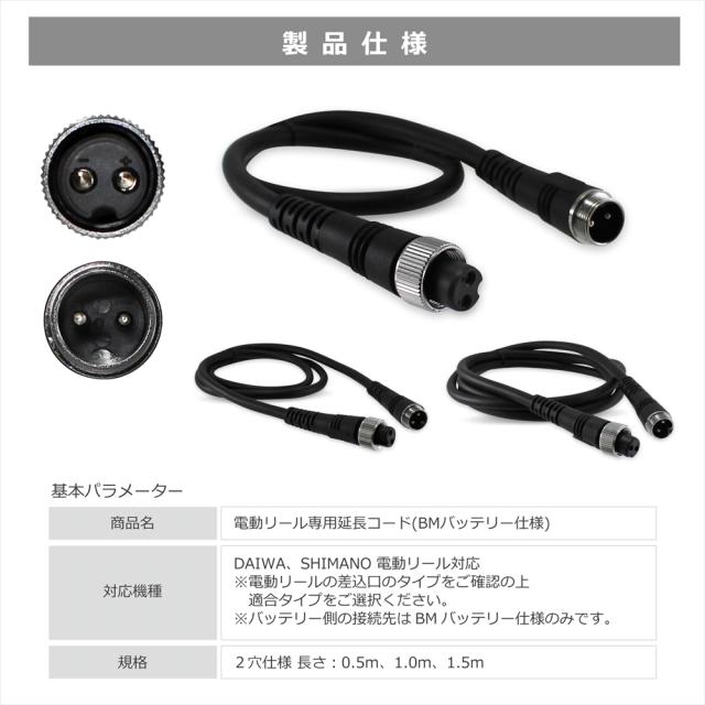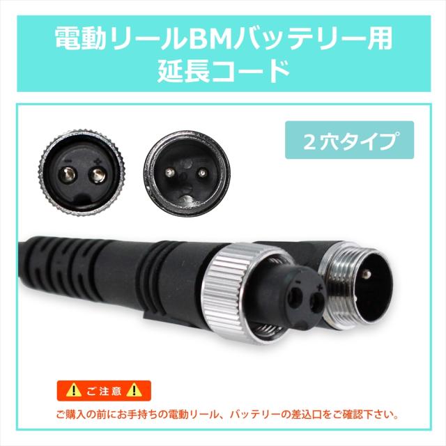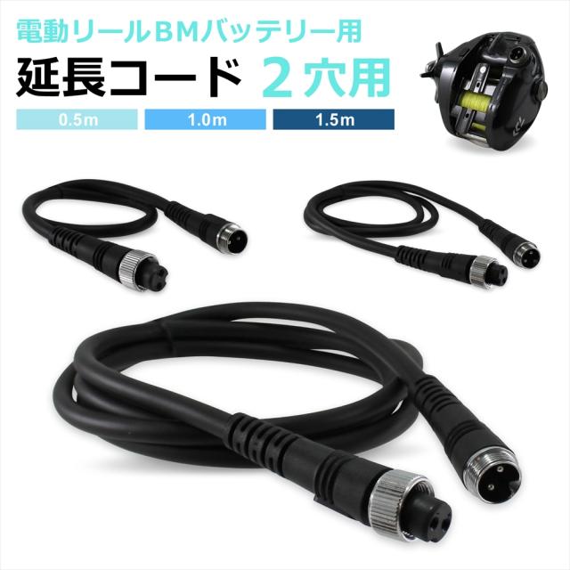 電動リール 延長ケーブル 延長コード 2穴 2芯 0.5m 1.0m 1.5m BMバッテリー用延長コード BMバッテリー バッテリー接続 電源コード 高耐久 ダイワ シマノ SHIMANO 釣り 海釣り フィッシング 釣り竿