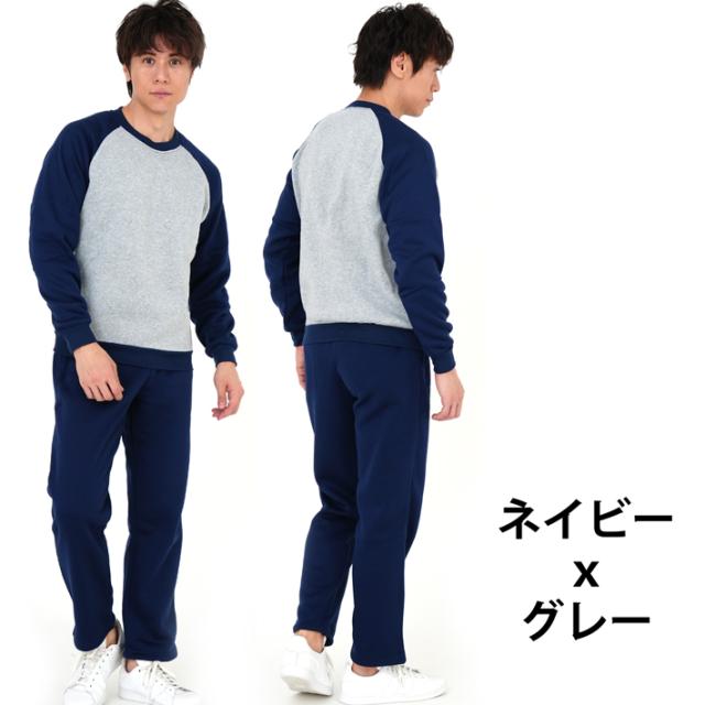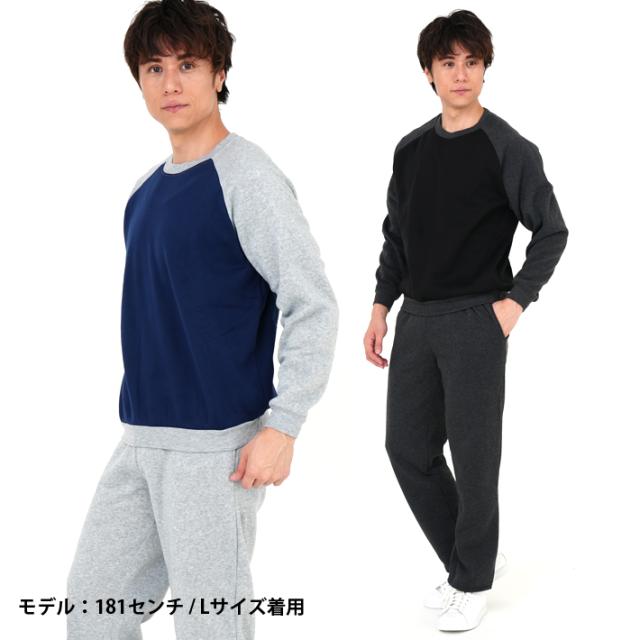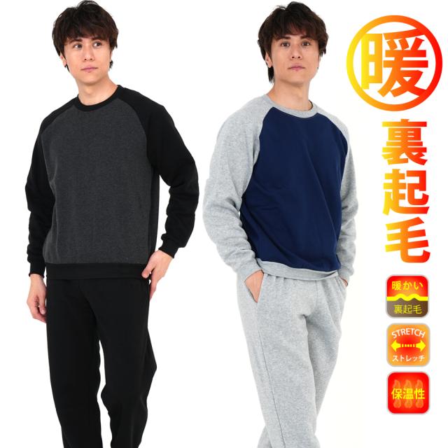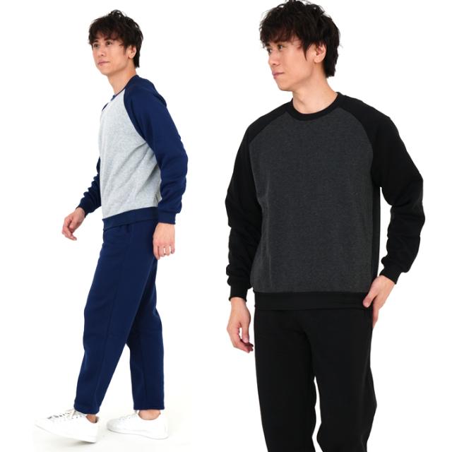 スウェット 上下 セット メンズ 裏起毛ラグランタイプ 袖切替 ルームウェアー 部屋着 あったか 暖 送料無料 裏起毛スウェットスーツ ラグランタイプ