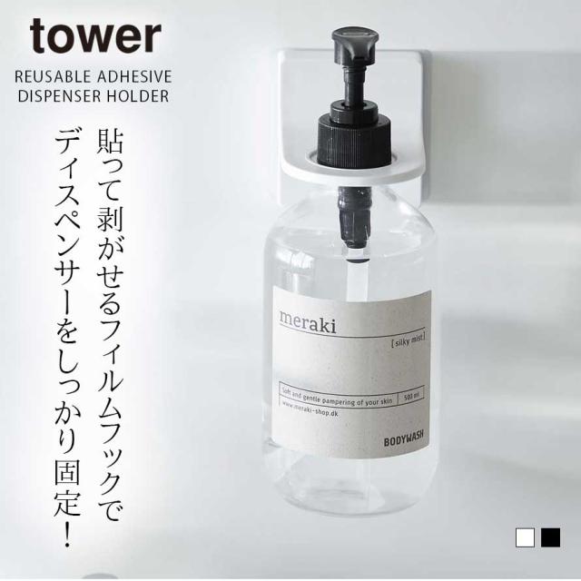ディスペンサーホルダー シャンプー 浮かせる tower タワー 山崎実業 バスルーム キッチン フィルムフック 浮かせる収納 ホワイト ブラック フィルムフックディスペンサーホルダー タワー