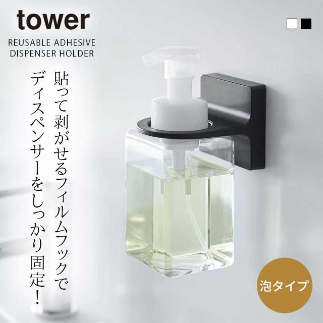 ディスペンサーホルダー シャンプー 浮かせる tower タワー 山崎実業 バスルーム キッチン フィルムフック 浮かせる収納 ホワイト ブラック フィルムフックディスペンサーホルダー 泡タイプ タワー
