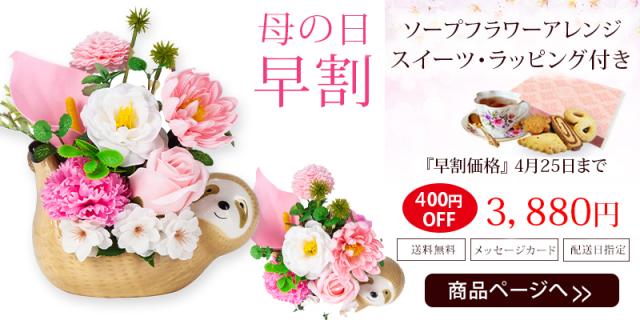吊り下げ型 ゆるかわ なまけもの ソープフラワー アレンジメント / 母の日 ギフト プレゼント 誕生日 花 バラ さくら カーネーション プリザーブドフラワー 記念日 母親 女性 妻 彼女 女友達 20代 30代 40代 50代 スイーツ お菓子