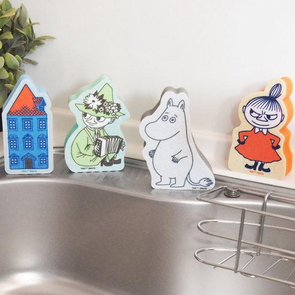 シンクサイドに置くだけで気分はムーミン谷。キッチンのインテリアを邪魔しない落ち着いた色使いもうれしいポイントです。自立するので、スポンジとして使用せずインテリアとして置いておくだけでも◎