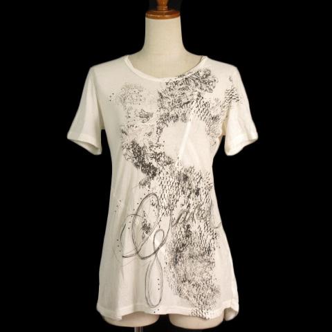 【中古】BLANCE ワールド カットソー プリント ラインストーン 半袖 40 アイボリー レディース