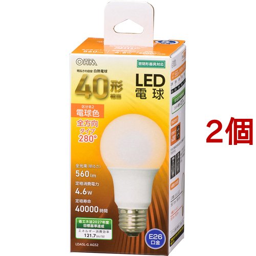 LED電球 E26 40形相当 電球色 LDA5L-G AG52(2個セット)[蛍光灯・電球]