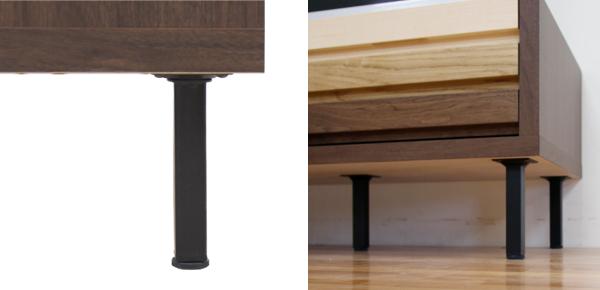 | アジャスター付き 脚にはアジャスターが付いています。設置の際に高さ調整ができ、ガタツキの改善をすることができます。 | お掃除ロボット対応 スチール脚の高さは15.4cmあるので、お掃除ロボットも通ることができます。 |