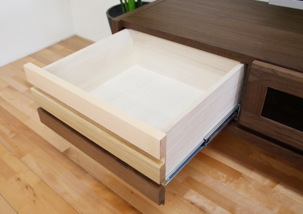 フルオープンレールを使用しており、引出し全体が手前に引き出せるので、奥の物もスムーズに取り出せます。また引出しは桐材を使用しており、防湿・防虫・耐火性の効果があります。