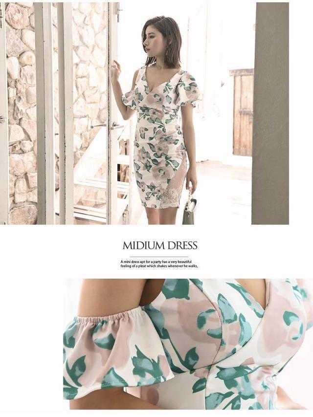 キャバ ドレス キャバドレス キャバクラ キャバワンピース パーティードレス DaysPiece アシンメトリー 花柄 半袖 シ