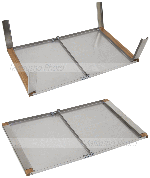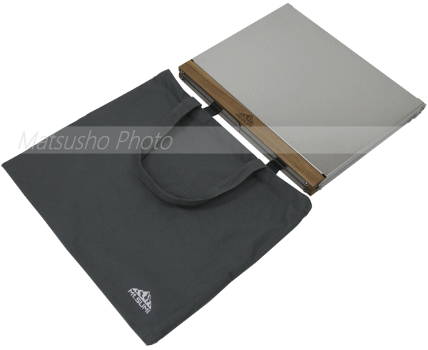 焚き火のそばでも安心して使えるステンレス素材。天板は細かい傷や汚れにも強いエンボス加工。天板の上で火器の仕様もOK。中央部のヒンジで驚異の耐荷重を実現。丈夫なのにコンパクトに折り畳めるので荷物になりません。専用の収納バッグ付属。様々な場面でタフに使える焚き火テーブルです。■製品名:焚き火サイドタフテーブル(レギュラー)■サイズ[展開時]W59×D36.5×H17cm[収納時]W22×D12×H3.3cm■重さ2.2kg■素材:ステンレス、木■耐荷重58kg■内容:本体、収納バッグ■保証:ご購入日より6ヶ月を保証期間と致します【注意事項】展開、収納時に可動部で指を挟まない様ご注意下さい。木部に直接火が当たらない様にして下さい。本商品はアウトドア用のテーブルでございますので組み立て時に多少のガタつきは生じます。この構造は野外で設置される際に地面に多少の凹凸がある場合にも脚の開き具合にて調整頂ける為の構造となっております。