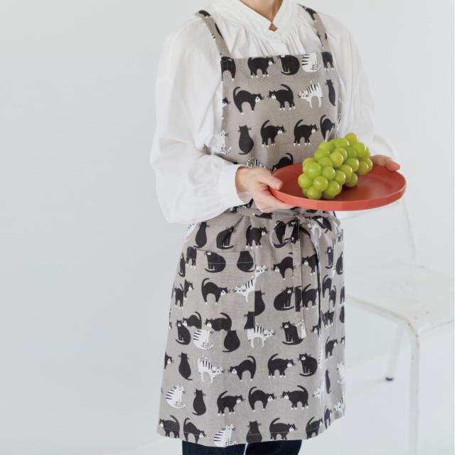 エプロン 猫柄 オレオ 綿100% ( キッチンエプロン アビチュアル ポケット付き 肩ひも インド 綿 ネコ 胸当てエプロン ビブエプロン 台所エプロン 大人用 コットン おしゃれ かわいい 腰ひも DIY ガーデニング レディース )